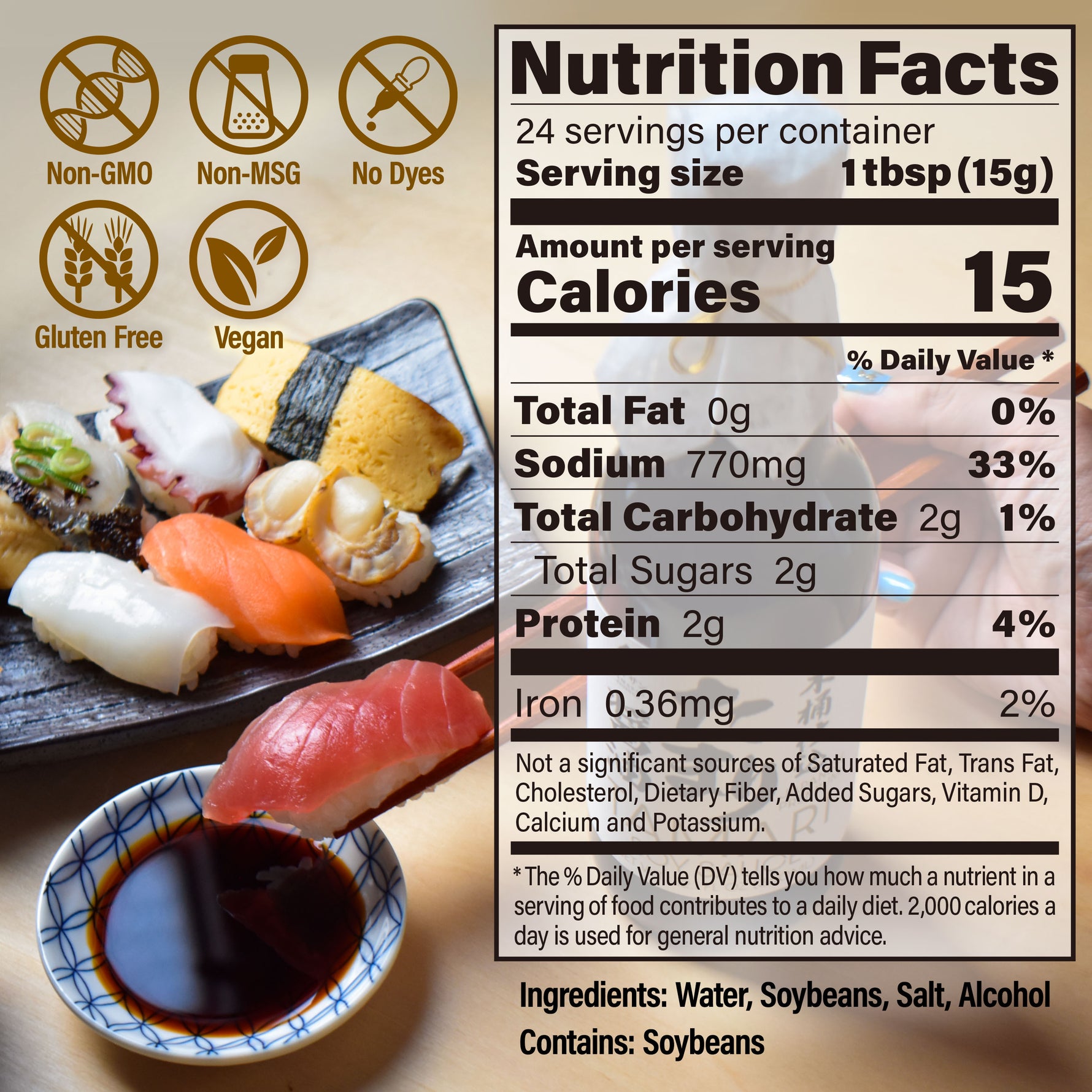 • 【Natural】 Premium Tamari Soy Sauce is Gluten-Free, Vegan, Non-GMO, No-MSG, No colorants.